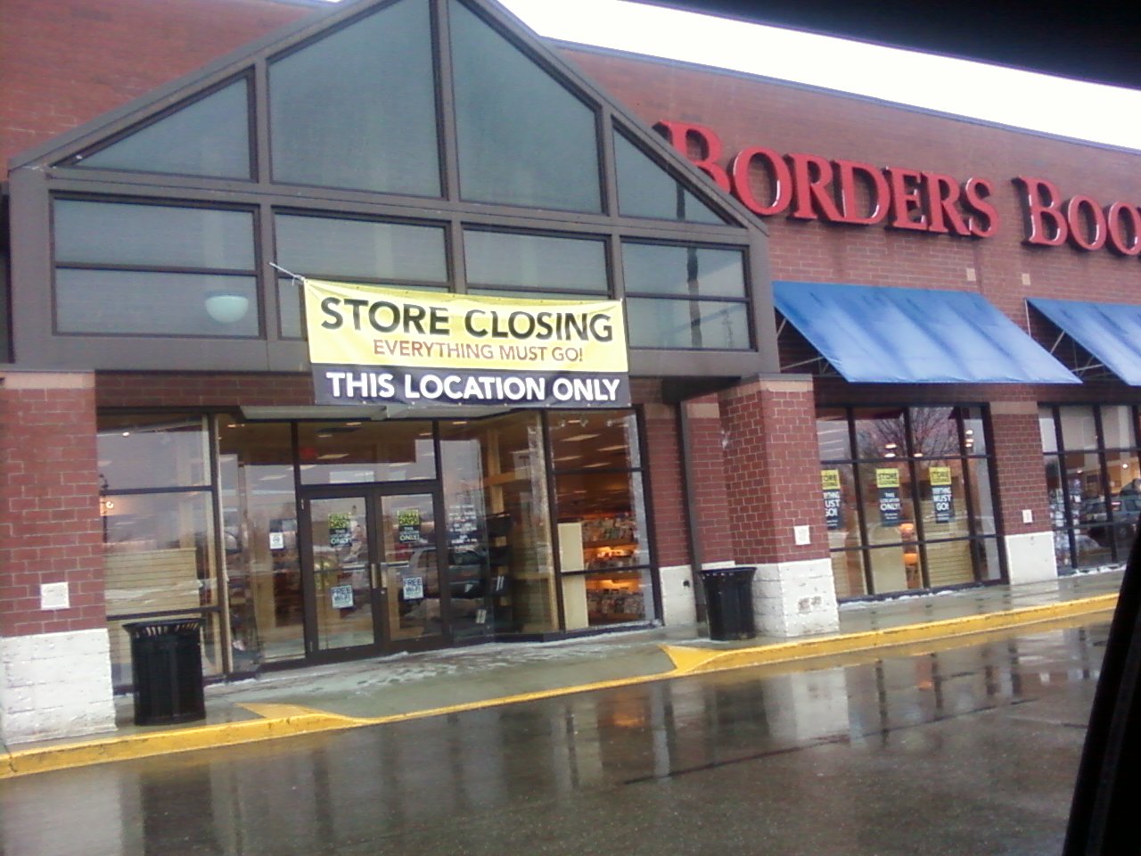 Pulled into this Borders in Fairlawn, Ohio today and saw the above sad sight. Borders, along with the other large chains and independent bookstores, have been hit hard by the economy and although I scored some books at 30% off, I would gladly rather see this store remain in business and pay full price for the items that I want. One day I wouldn’t be surprised to see 90% of the brick-and-mortar stores go by the wayside and the rest of the people that aren’t already buying their reading materials online to do so at that time. But for me, nothing will ever beat the feeling of walking into a bookstore, picking up the latest horror novel, reading the back cover blurb, the smell of the fresh printed paper or the look of excitement of those people that are true lovers of the written word. Today was indeed a sad day.