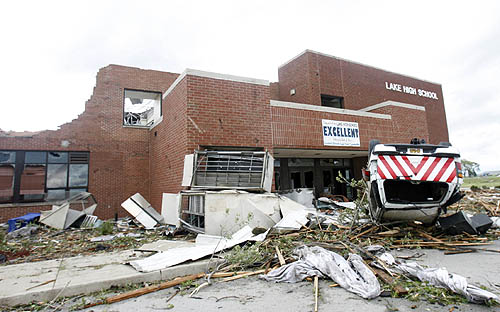 Late this past Saturday night a tornado ripped through Millbury, Ohio and its surrounding communities. Millbury has a special place in my heart, not only because my grandparents lived there, but pretty much my entire family – my parents, aunts, uncles, cousins, along with family friends – all live in or around the town. Though, I am thankful that all my family members are safe and sound, it is still painful for me to see such a great community in ruins. Hell, I pretty much spent half my childhood in the town while visiting my grandparents and other family members. In fact, in this video (which is followed by an article about the twister), you’ll see what is left of many people’s homes and also of Lake High School’s Field House (note: the photo above is only of the school itself – the Field House was leveled) that is/was named after my grandfather.