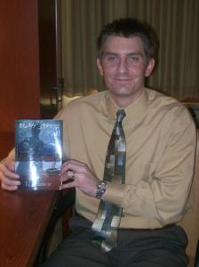 In addition to the interview, I was asked to submit a photo of myself holding Night School. I figured I would go ahead and post the picture here, not only to give you a feel for the article but to finally let some of you see what I look like (besides the small picture in About Me).